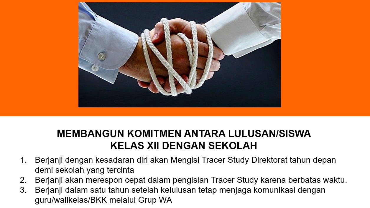 Melalui data yang terkumpul, dari Kegiatan Tracer Study, kita dapat mengetahui kemampuan lulusan dan relevansi proses pembelajaran dengan dunia kerja. Sekolah berharap mendapatkan umpan balik dari para lulusan dan pihak industri mengenai profil kompetensi yang dibutuhkan.By-Humas SMKN 5 Bjm