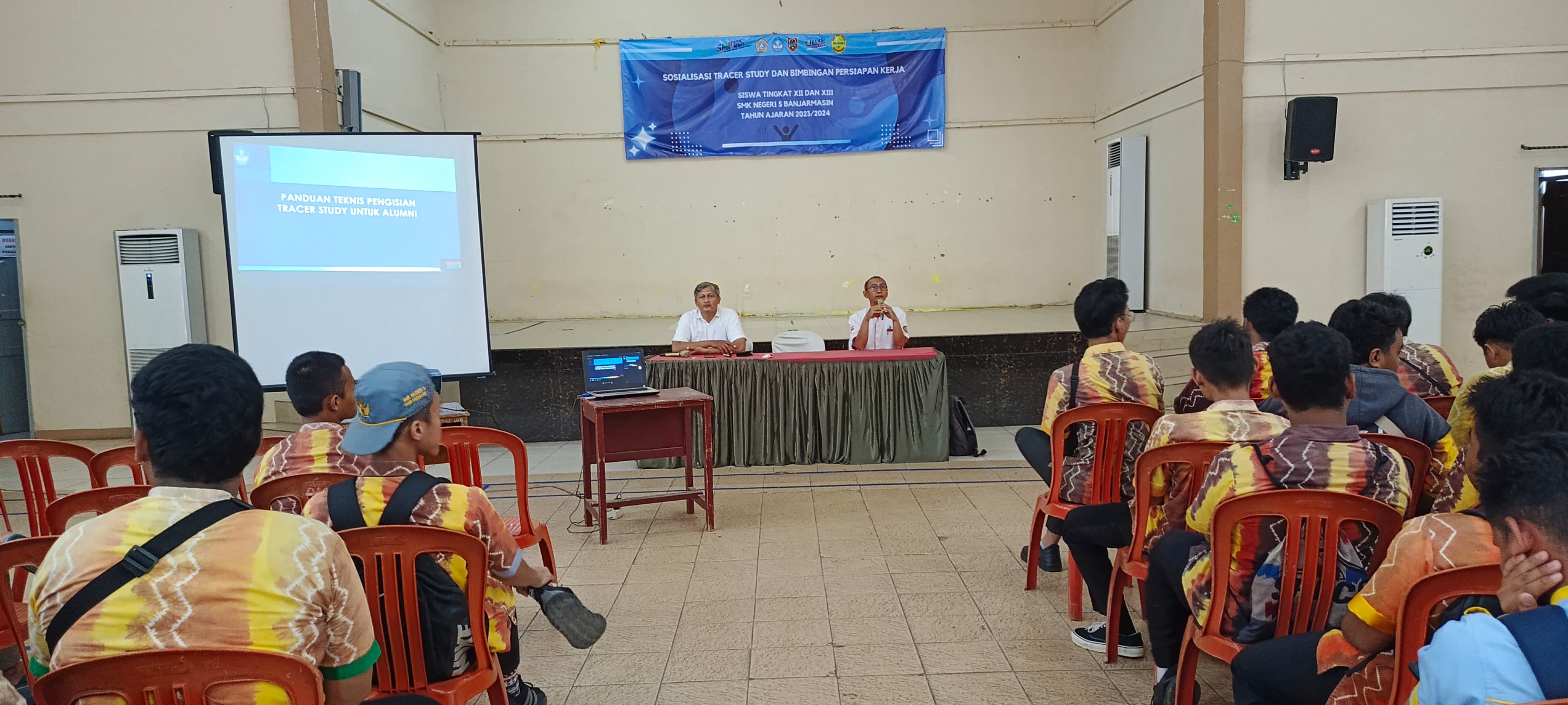Banjarmasin–Pada hari Rabu, 22 Mei 2024, SMKN 5 Banjarmasin mengadakan sosialisasi Tracer Study kepada alumni Tahun 2024 bertempat di Aula Serbaguna SMKN 5 Banjarmasin. Bimbingan/ Sosialisasi Tracer Study merupakan bagian program yang teragendakan dari Waka Humas & BKK SMKN 5 Banjarmasin. Dari Kegiatan Bimbingan /sosialisasi Tracer Study, SMKN 5 Banjarmasin berharap meningkatkan partisipasi alumni dan pencapaian Tracer Study 100 % selama 3 tahun berturut-turut.