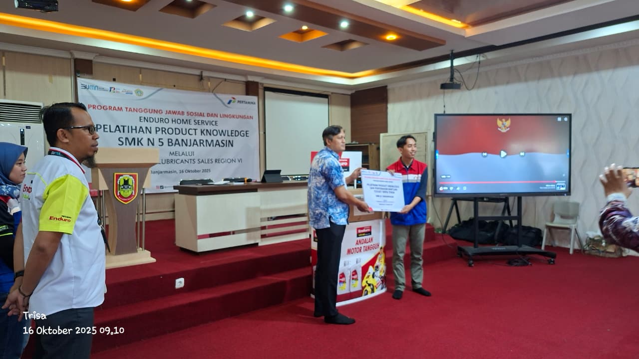 Pada hari Kamis, 16 Oktober 2025, telah dilaksanakan kegiatan Program Tanggung Jawab Sosial dan Lingkungan (TJSL) PT.Pertamina Lubrcants yang meliputi pemberian bantuan peralatan bengkel EHS di sekolah dan pelatihan product knowledge.
