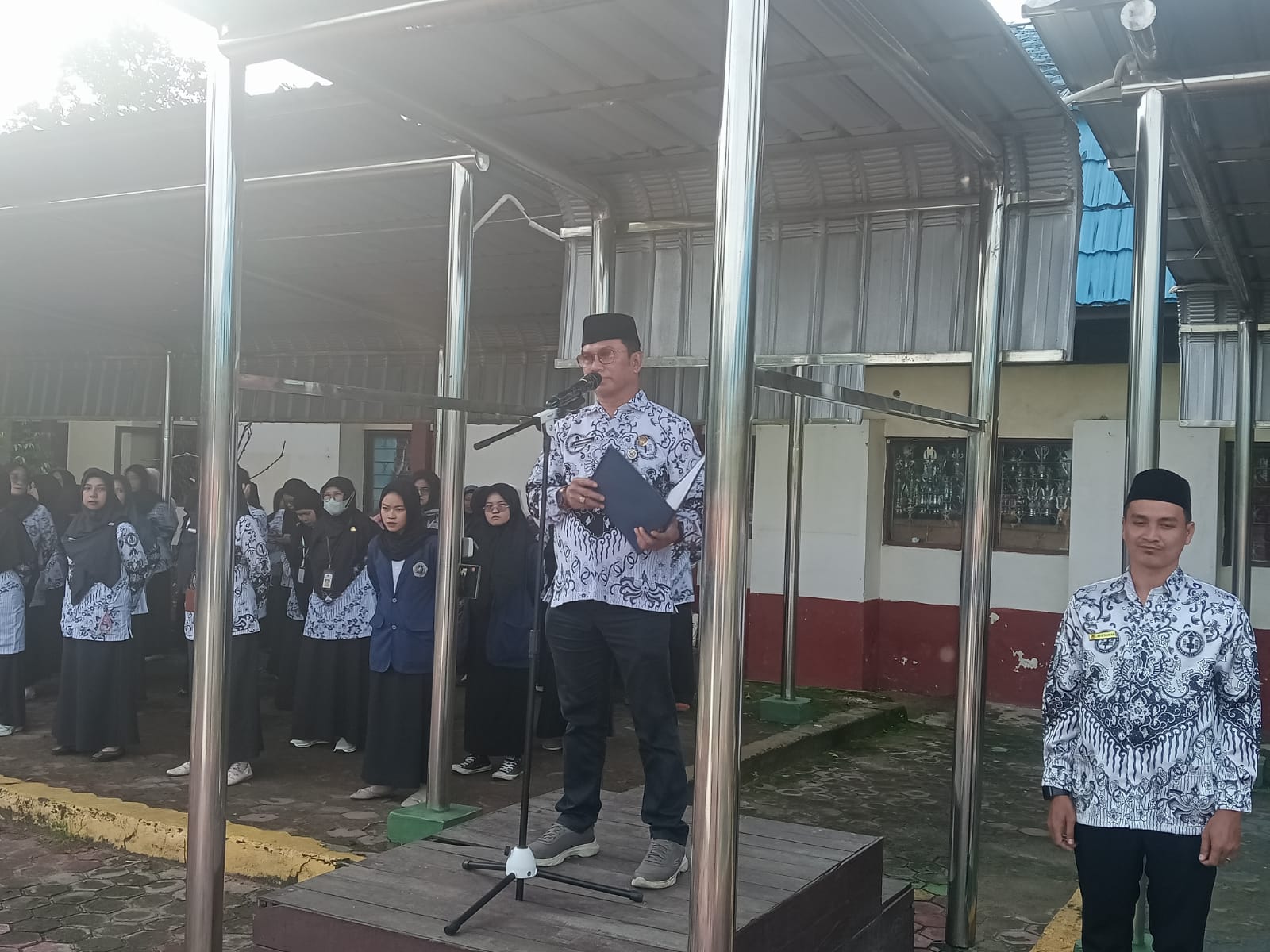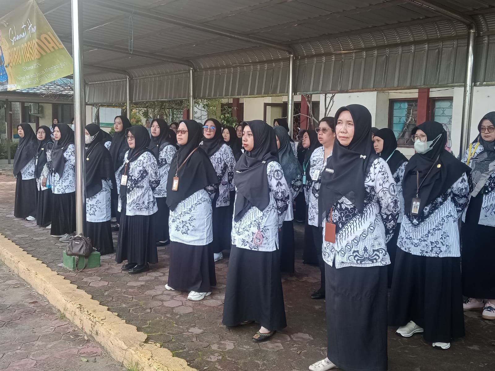 Upacara berlangsung khidmat di halaman sekolah dan diikuti oleh seluruh guru, tenaga kependidikan, serta peserta didik. Kehadiran guru sebagai petugas upacara menjadi simbol dedikasi dan keteladanan yang selama ini mereka berikan kepada siswa.