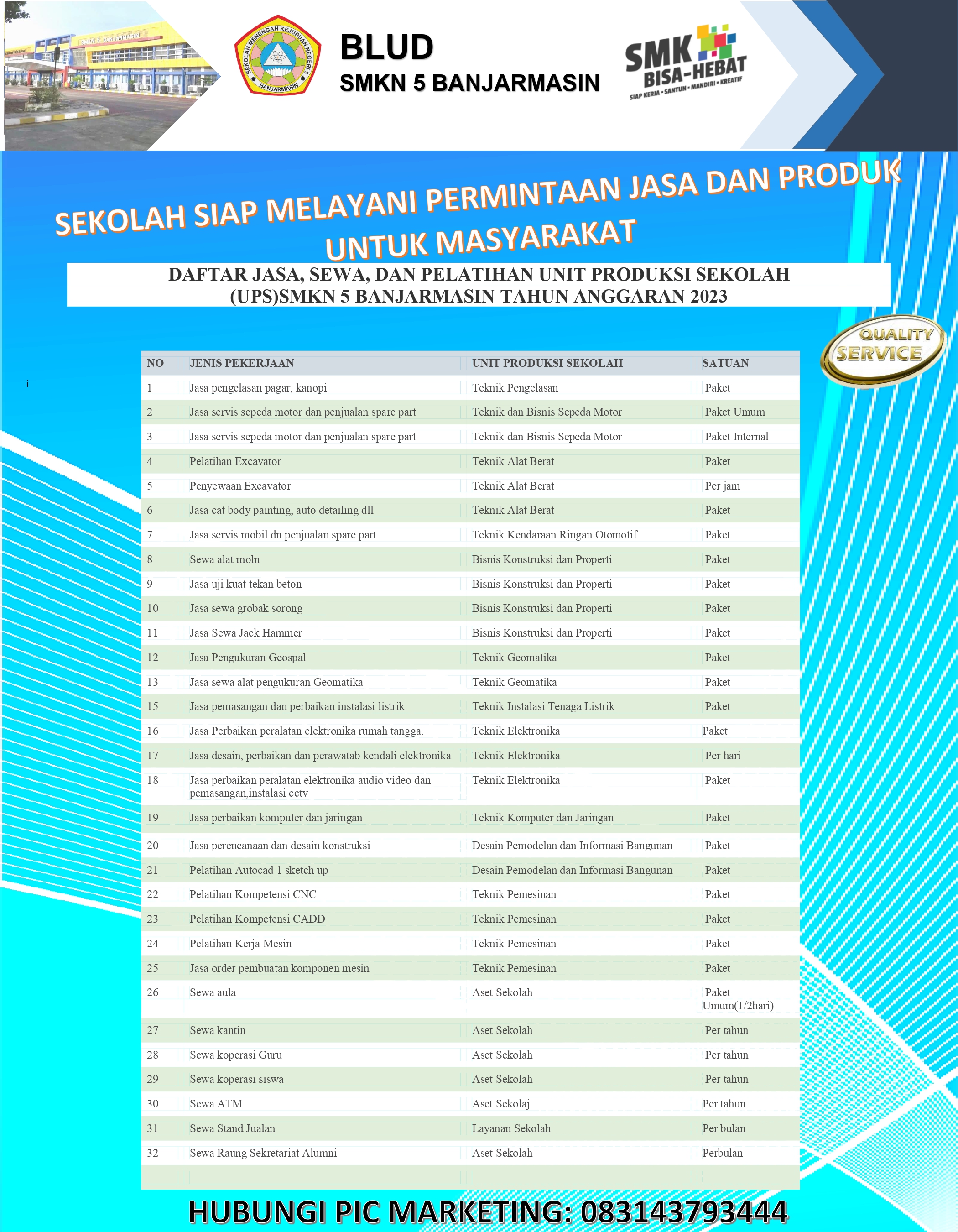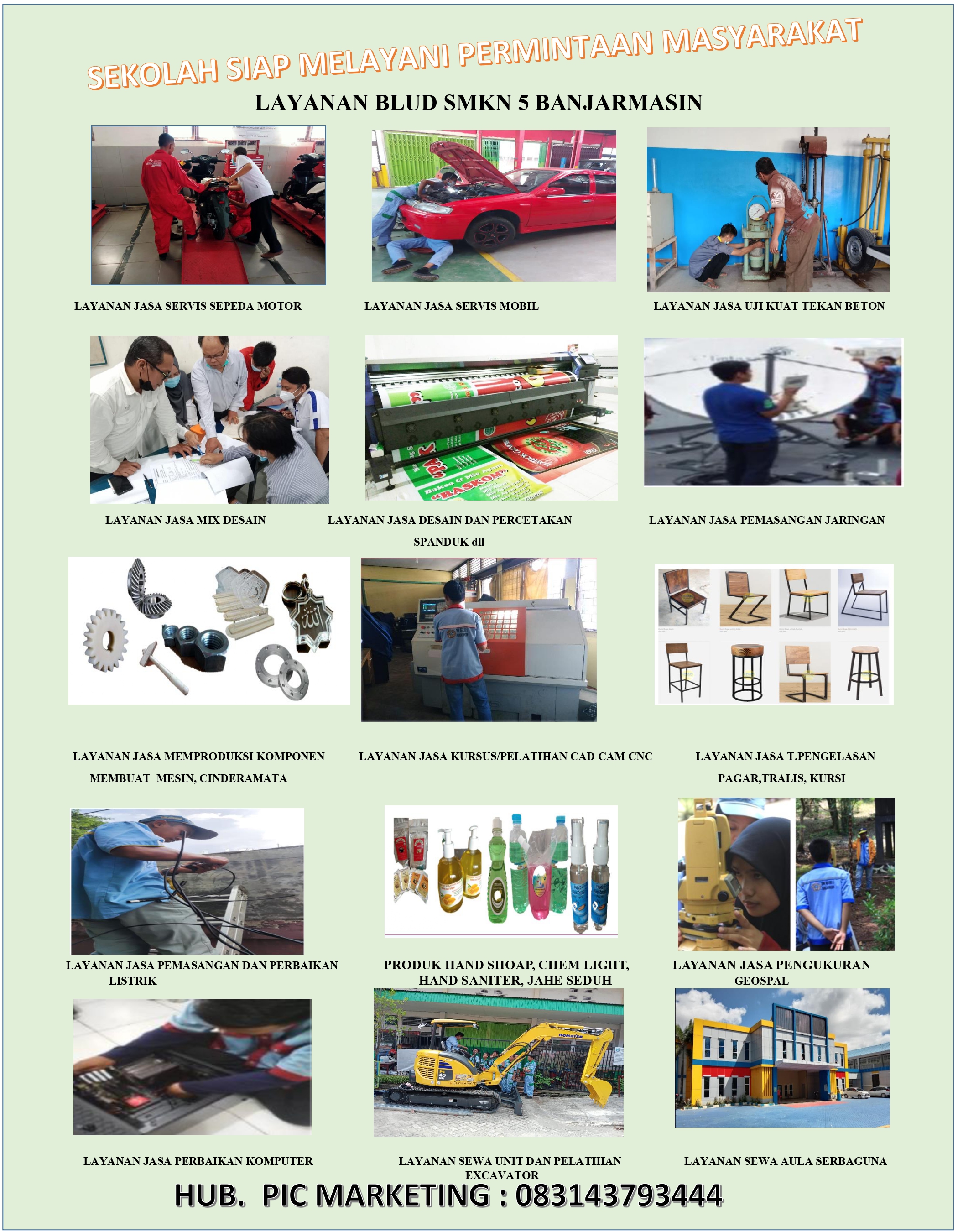 SMKN 5 BANJARMASIN SUDAH DITETAPKAN SEBAGAI SMK BLUD DAN SIAP MELAYANI PERMINTAAN PRODUK DAN JASA DARI MASYARAKAT